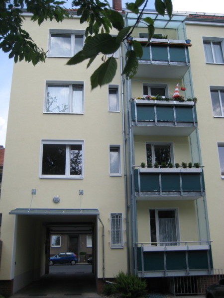Sieben der 3-Zimmer-Wohnungen verfügen über einen Balkon in Süd-West-Richtung. Die Balkone sind überdacht und vom Einblick her geschützt. Eine der Wohnungen verfügt anstelle des Balkons über einen studioähnlichen Wintergarten, quasi "über den Dächern der Südstadt" und eine Wohnung verfügt über keinen Balkon; da es sich hierbei um eine Dachgeschoss-Wohnung handelt. Die meisten der 3-Zimmer-Wohnungen verfügen über einen Parkett-Fußboden oder in einigen Fällen über Laminat. Die Wohnungen verfügen, wie im übrigen alle unsere Wohnungen über eine eigene Gastherme zur Heizung und Warmwasserbereitung. Die Raumhöhen betragen 2,60 m.